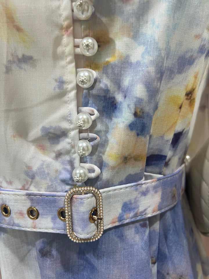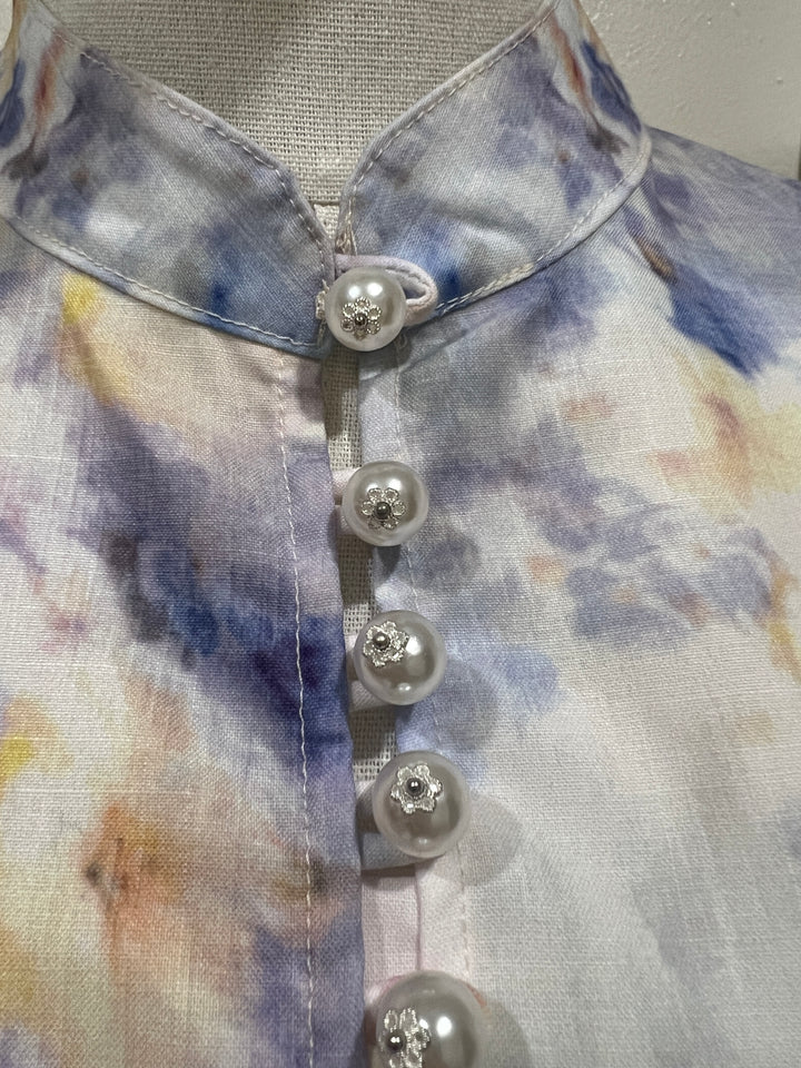 Linen dress with pearl buttons